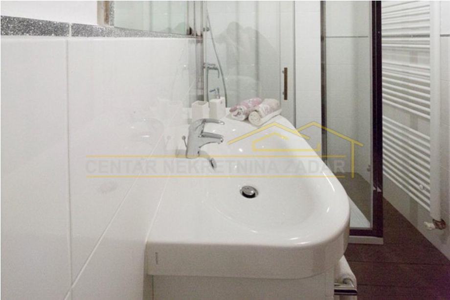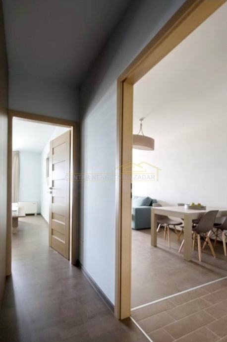 Prodaje se stan ukupne neto površine 63,25 m², smješten na trećem katu poslovno-stambene zgrade u Biogradu na Moru. Stan površine 45,91 m² sastoji se od kuhinje s blagovaonom i dnevnim boravkom, jedne spavaće sobe, hodnika i kupaonice te lođe istočne orijentacije od oko 19 m². Pripada mu spremište u podzemnoj garaži do koje vodi lift. Stan je potpuno namješten. Zgrada ima energetski certifikat A+, a stan je opremljen prvoklasnim materijalima. Ima vrhunsku stolariju, protuprovalna vrata, videoportafon, klimu i grijanje, ugrađene instalacije za internet. Zgrada ima 24-satno dežurstvo i pruža sve što je potrebno za ugodan život. Pogodnost položaja ove zgrade je odlična prometna povezanost i lakoća priključka na Jadransku magistralu, a uz to i blizina centra i plaže do kojih se može doći za desetak minuta hoda. Biograd na Moru je poznati turistički i nautički centar u samom središtu jadranske obale. Leži na poluotoku okruženom modernim marinama i rivom s koje se pruža nezaboravan pogled na slikoviti Pašmanski kanal i otočiće koji su po njemu razasuti. Zanimljiv zemljopisni položaj u okružju nacionalnih parkova i parkova prirode te dugogodišnja turistička tradicija bitni su razlozi za odabir Biograda kao odredišta za zanimljiv i dinamičan godišnji odmor, ali i svakodnevni život.