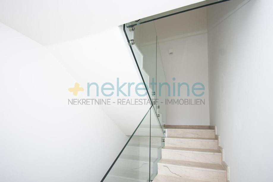 Ovaj stan nudi modernu arhitekturu i visokokvalitetnu gradnju, s prostranim prostorom i velikim staklenim prozorima koji omogućuju obilje prirodnog svjetla i pružaju prekrasan pogled na grad.