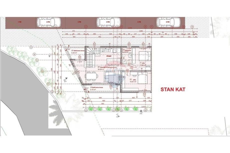Svakom stanu pripadaju dva parkirna mjesta i dio okućnice, vrta, prema prikazanoj slici i približno izračunatoj kvadraturi.