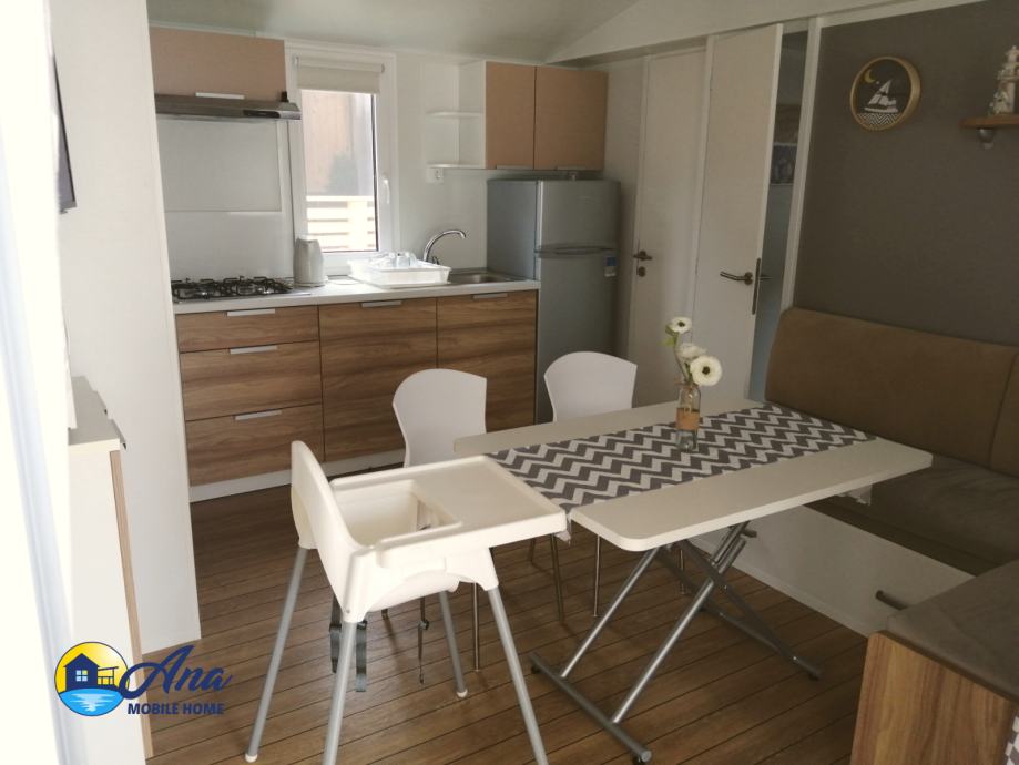Ukupne korisne površine je 62 m2 (stambeni dio 32 m2 i terasa 30 m2) i 1 parkirno mjesto. Kućica je proizvedena 2019 god., proizvođač kućice je Adria model SLine Dalmacija mobile home.