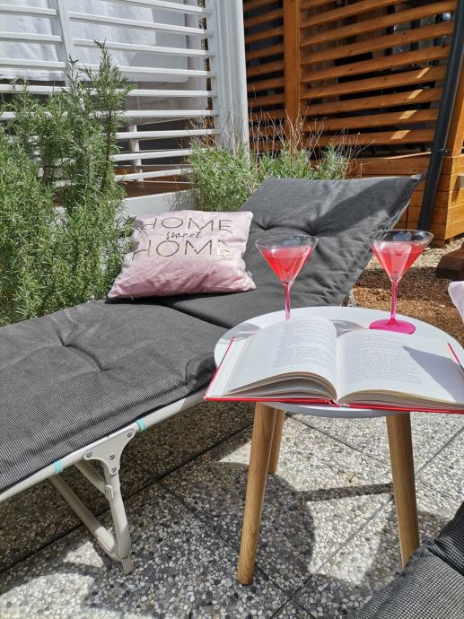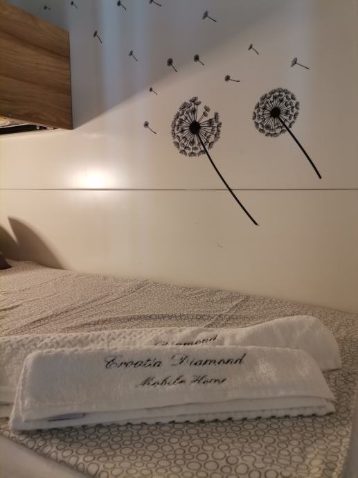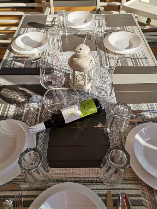maksimalno prima sedam osoba. Od dodatneopreme ima klima uređaj, perilica suđa, TV sa satelitskom antenom i pokućnim interenetom, mkrovalna pećnica, hladnjak, kuhalo za vodu, plinski roštilj, štednjak s napom posuđe i pribor za jelo, stol i šest stolica na terasi, vrtna garnitura za osam osoba, četiri kompleta posteljine za sedam osoba tri kompleta ručnika velikih i malih za sedam osoba . Jedno parkirno mjesto nalazi se pokraj kućice. Paušal u iznosu 6.400,00 eura uplaćen za 2024. godinu.