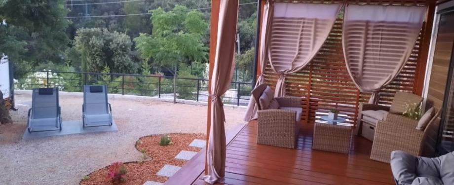 Udaljenja 5min do plaze. Ukupna povrsina je 76m², sama kucica je 47m², ostalo je terasa.