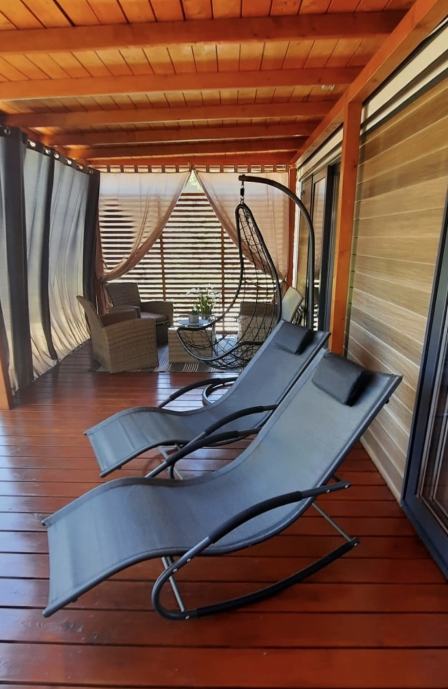 - Ogromna terasa opremljena garniturom za sjedenje/veliki sto za jelo za 8 osoba/lezaljke i ljuljacka