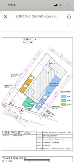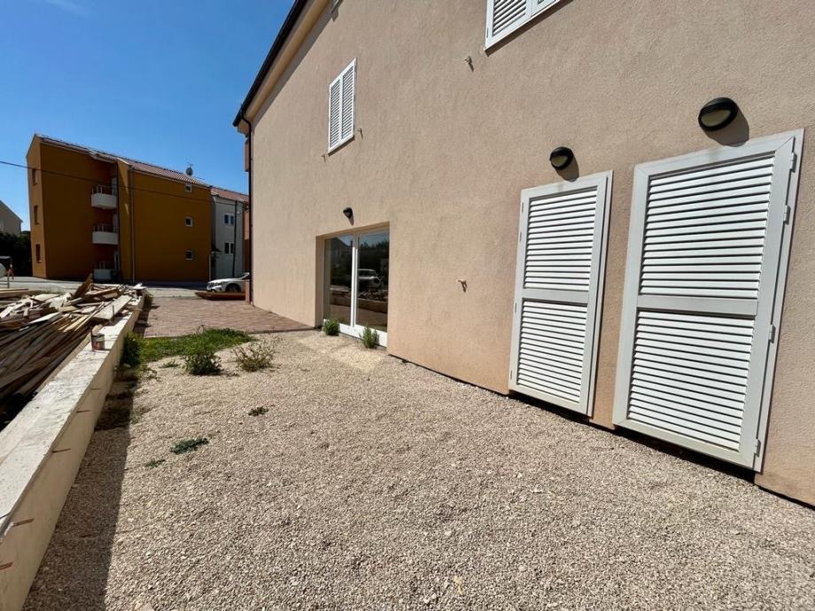 Moderan stan S1 u prizemlju novogradnje - samostojeće zgrade s ukupno 3 stana,na svakom katu po jedan. Zgrada se nalazi u apartmanskom naselju u mirnom dijelu Biograda, 900 m od plaže , 600 m shoping centar.