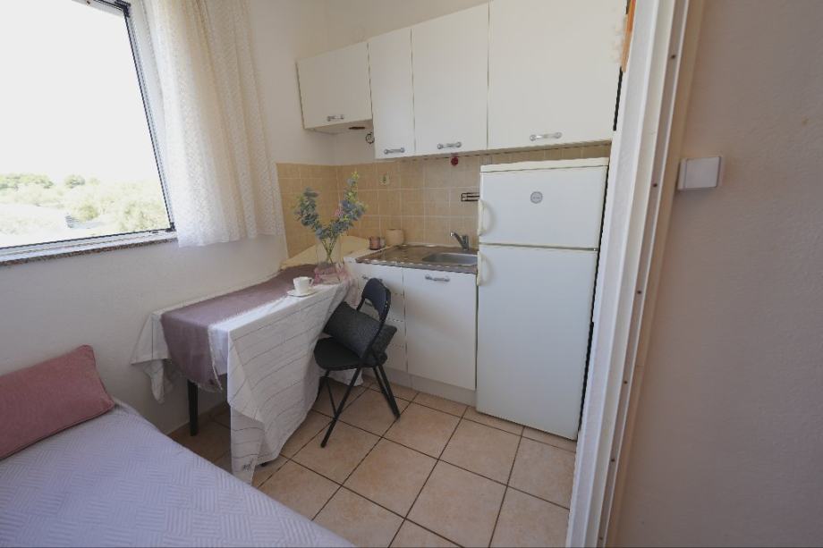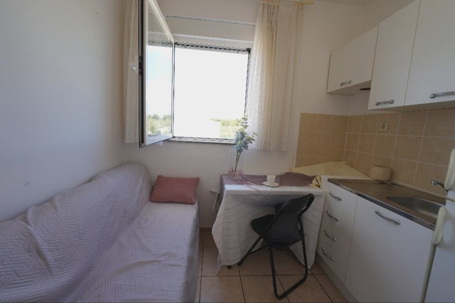 Stan – apartman na 1. katu. Sastoji se od predsoblja, kuhinje, kupaone, sobe i balkona. Stanu pripada i spremište u podrumu. Površina stana je 30,95 m2, površina spremišta sa koeficijentom je 2,00 m2. Udaljenost do plaže iznosi 270 metara. Sa balkona se pruža prekrasan pogled na more. Apartman ima pogled na zapad i sjever. Svakom stanu pripada i po 1 parkirno mjesto ispred zgrade.
