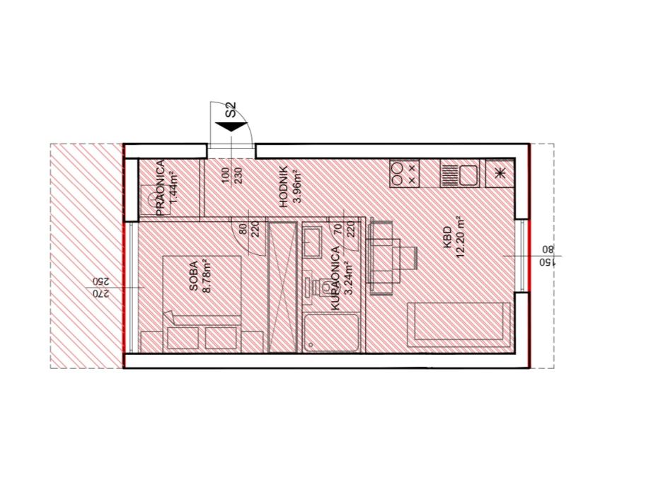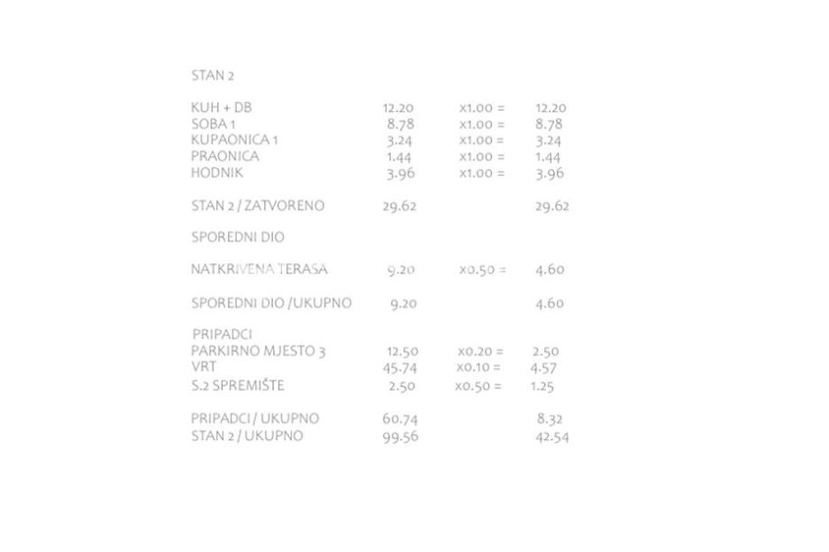 Apartman S2 u prizemlju objekta ukupne neto korisne površine od 42 m2 sastoji se od dnevnog prostora površine 12 m2 (kuhinja, blagovaonica i dnevni boravak) spavaće sobe površina 8 m2, kupaonice površine 3,2 m2, praonice površine 1,4 m2, natkrivene terase površine 9 m2 i vrta površine 45 m2.Apartman je orijentacije istok - zapad.U skrivenom dragulju sjeverne Dalmacije, mjestu Pakoštane smještenom u samom središtu Jadranske obale i jedinstvenom položaju između obale i Vranskog jezera gradi se objekt s 9 apartmana na pješačkoj udaljenosti od plaže od 250 m. Zahvaljujući izoliranoj poziciji unutar zelenog pojasa lokacija objekata pruža izuzetan mir.Svi apartmani će biti opremljeni klima uređajima u spavaćim sobama i dnevnom prostoru. U kupaonicama će biti postavljeno podno grijanje a podne obloge će biti od laminat parketa ili keramičkih pločica. Stakla će biti troslojna a vanjska izolacija će biti od 10 cm stiropora.Svi apartmani će imati osigurano parking mjesto, ostavu i zajednički bazen.Način plaćanja je 50 % prilikom potpisa predugovora a ostatak u fazama radova.Predviđeni završetak objekta je u 12 mjesecu 2025 godine a useljenje do 5 mjeseca 2026 godine.Malo o lokaciji: Pakoštane na zapadu graniče s mjestom Biograd na moru a okružuju ga četiri nacionalna parka (Kornati, Krka, Paklenica i Plitvička jezera) i dva parka prirode (Telašćica i Vransko Jezero).Prva spominjanja mjesta Pakoštane datiraju iz 15 stoljeća, dok se u rimsko doba na mjestu današnjih Pakoštana nalazila luka rimskog grada Asseriae zbog čega mjesto obiluje povijesnim ostacima iz Rimskog doba. Osim samog mjesta, i u okolici Pakoštana se nalaze mjesta povijesnog značenja zbog čega je ovaj kraj izuzetno zahvalan za ljubitelje povijesnih znamenitosti.U samom mjestu se nalaze prekrasne plaže a u akvatoriju mjesta se nalazi 5 malih otočića zbog čega je ovo mjesto zahvalno za ljubitelje brodskih izleta.Ako želite osjetiti izvorni duh dalmatinskog mjesta a istovremeno ste pustolov željan istraživanja ljepota prirode i bogate prošlosti, Pakoštane su pravi izbor za Vas.Dodatne informacije - udaljenosti od važnijih lokacija:More: 250 m / Plaža: 250 m / Zadar 33 km / Zračna luka 27 kmKupovina: 1000 m / restoran: 650 m / ljekarna 1000 m / centar mjesta 1000 mZa sve ostale informacije stojim na raspolaganju....