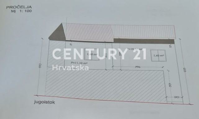 Osim toga, kuća ima i tavan prekriven standardnim crvenim crijepom. Tehnički i pravno je izvedivo uz odgovarajući zahvat, dio krova urediti u terasu za sunčanje i večernja druženja.