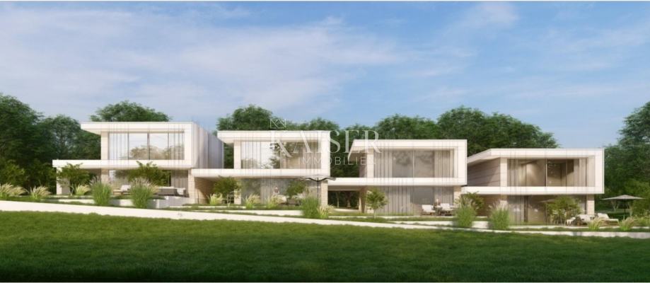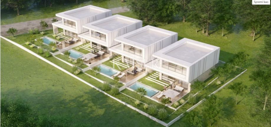 Predstavljamo luksuznu dvoetažnu vilu u nizu, s prostranim vrtom, bazenom i predivnim pogledom na more i otoke, koja spaja udobnost s modernom arhitekturom. Ukupne površine 171,89 m².Dodatne prednosti vile su otvoren koncept dnevnog boravka i kuhinje, prostrane spavaće sobe s garderobama i privatnim kupaonicama kao i velika terasa i vrt.