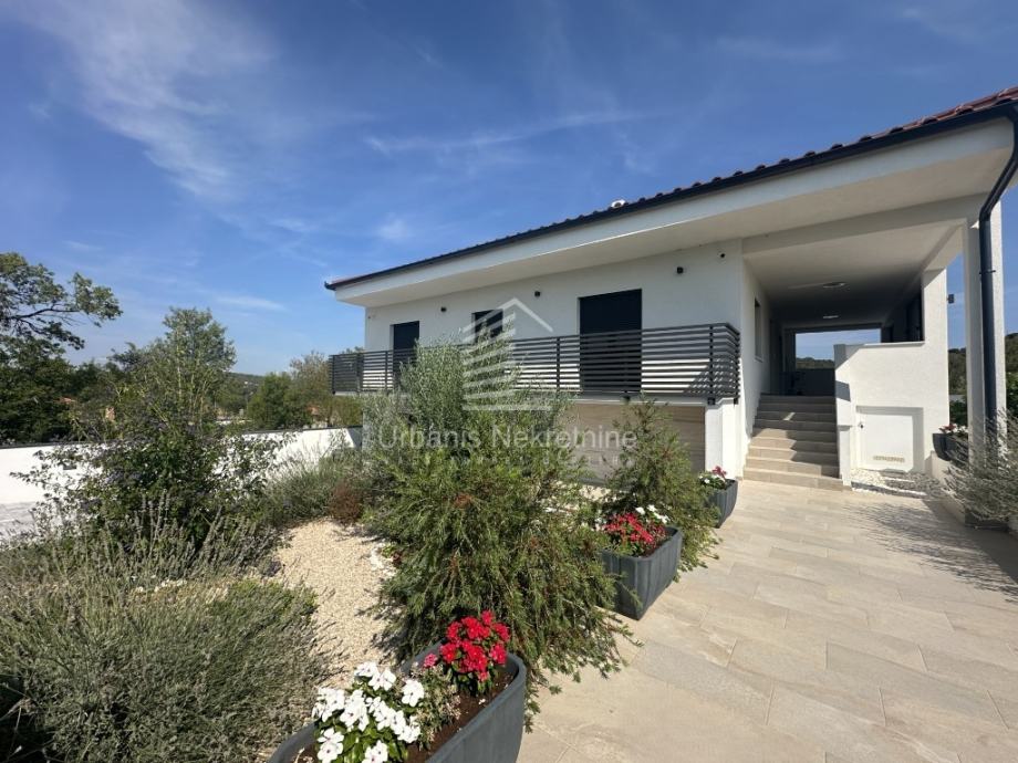 Ulaz u kuću vodi preko velike natkrivene terase uređene za boravak i druženje na otvorenom. Namještaj u spavaćim sobama i kuhinja izrađeni su po mjeri. Ugrađena je aluminijska stolarija s roletama i komarnicima. Sve spavaće sobe i dnevni boravak su klimatizirani, a podne obloge izvedene su u keramici. Uz kuću se nalazi garaža za dva veća automobila te prostrani podrum. Objekt je priključen na septičku jamu.