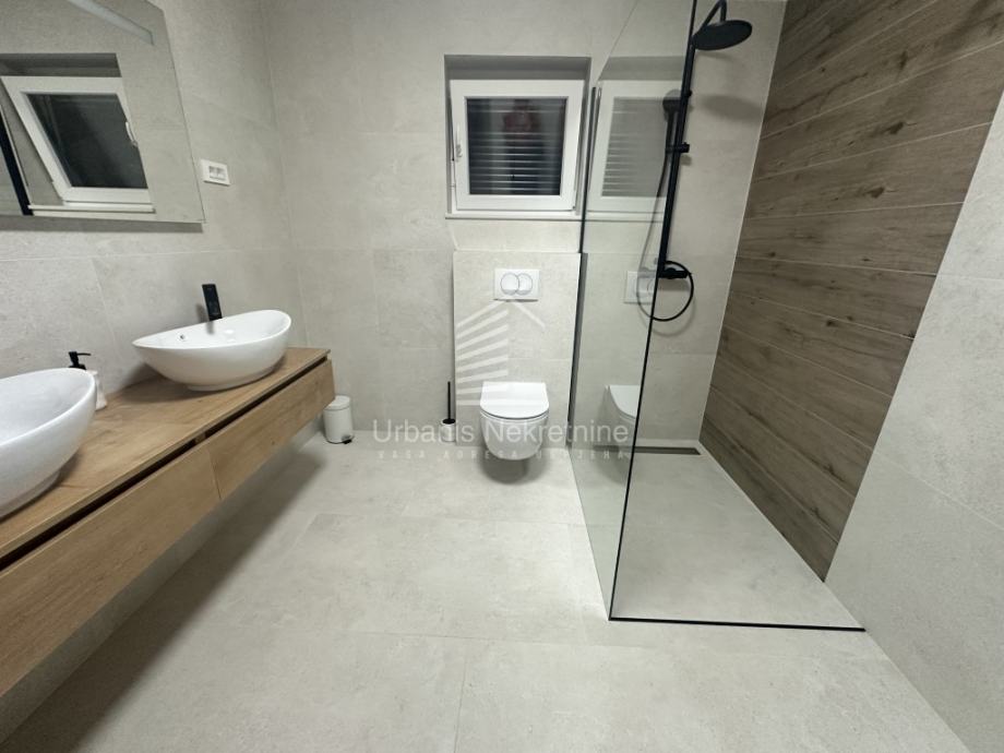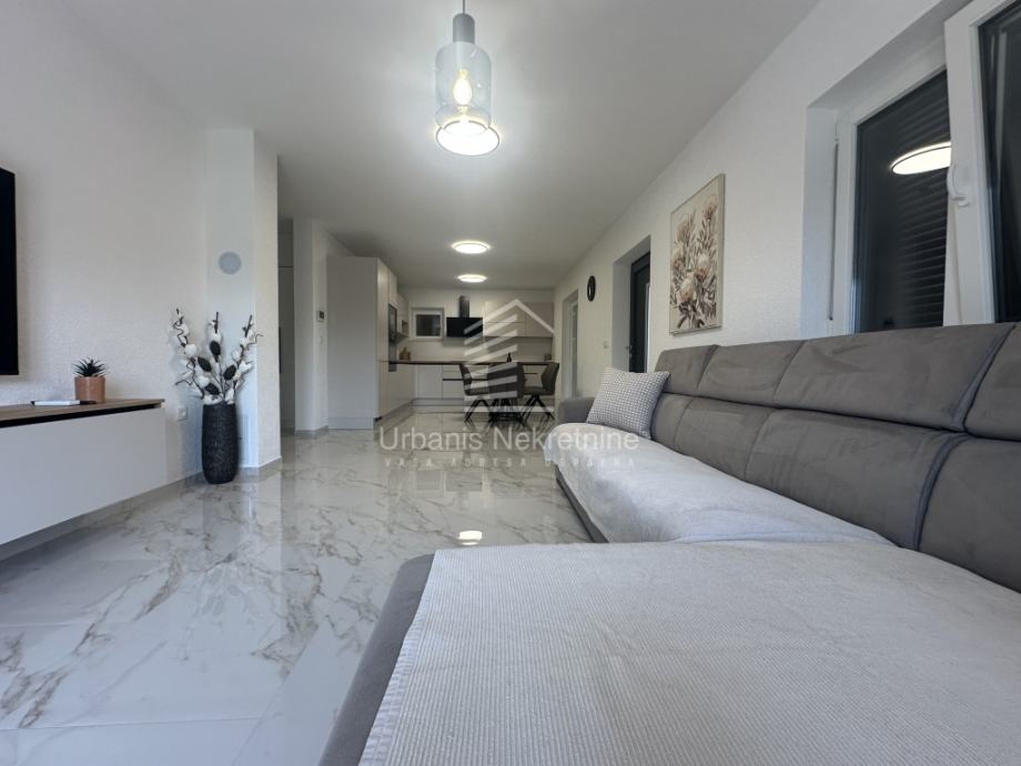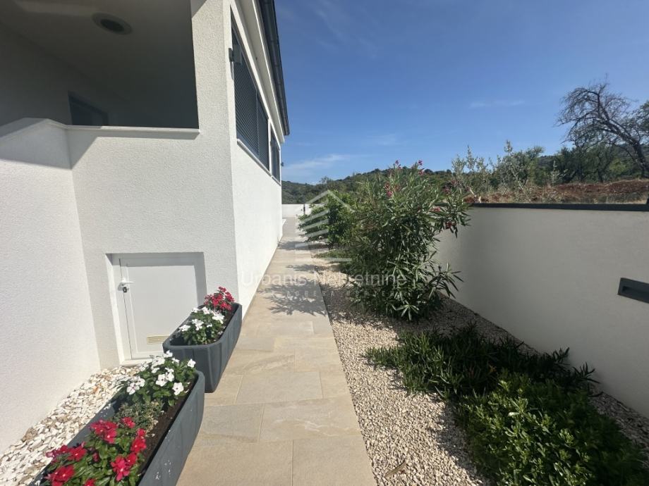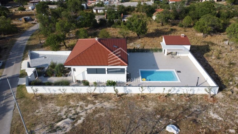 Prodaje se potpuno uređena kuća s bazenom. U mirnom naselju okruženom prirodom, svega 11 km od Biograda na Moru, prodaje se potpuno uređena, opremljena i namještena kuća spremna za useljenje ili turistički najam. Kuća ima ukupnu površinu od 162 m² i smještena je na uređenom zemljištu od 792 m². Sastoji se od tri spavaće sobe, od kojih jedna ima vlastitu kupaonicu, dodatne kupaonice, predsoblja te prostranog dnevnog dijela s kuhinjom i blagovaonicom u otvorenom konceptu. Iz dnevnog boravka i dviju spavaćih soba izlazi se na balkon s pogledom na vrt.