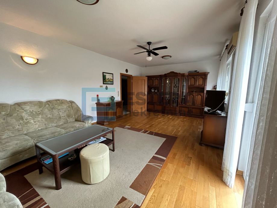 - Prizemlje (139 m2): Prostrani stan sa hodnikom, kuhinjom s blagovaonicom, dnevnim boravkom, 1 spavaćom sobom, velikom kupaonicom, WC-om, zatvorenom lođom (18 m2) i natkrivenim balkonom