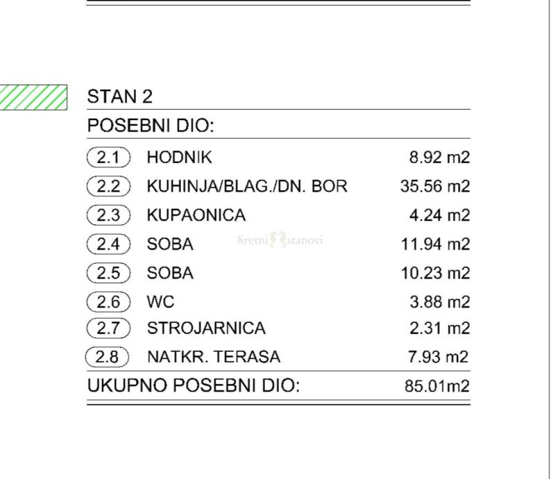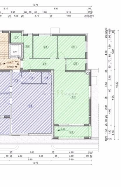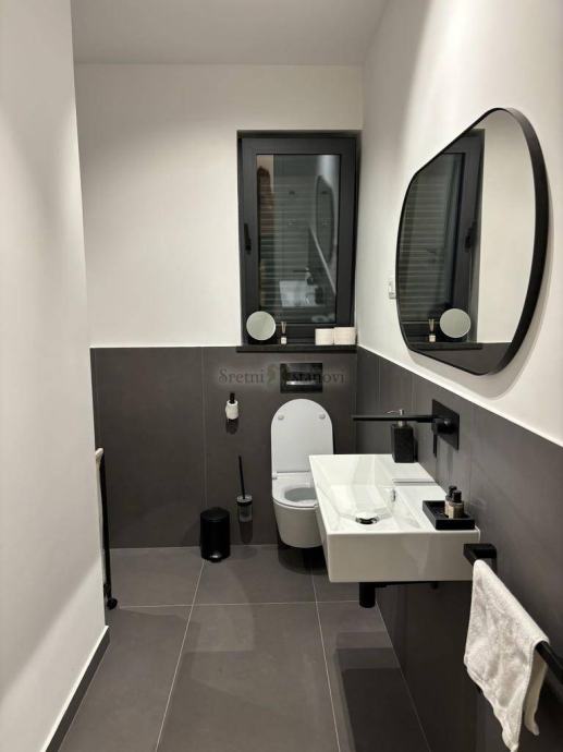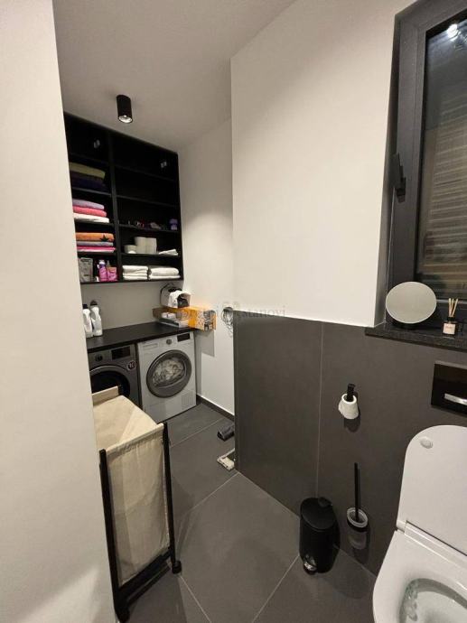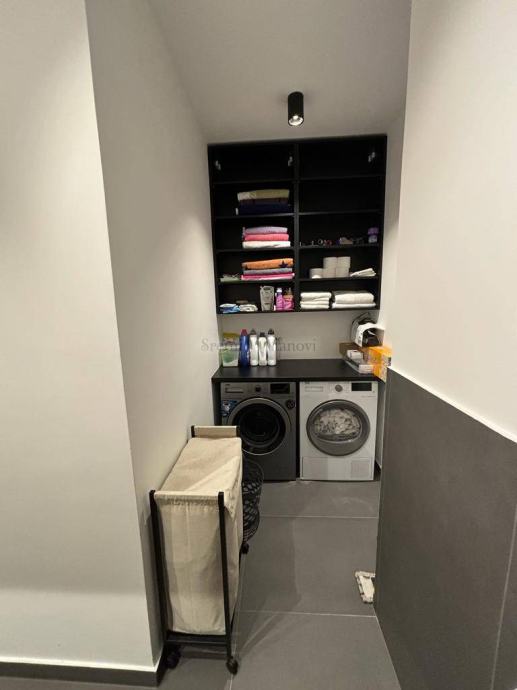 Moderan, lijepo uređeni stan u novogradnji, blizu mora. U visokom je prizemlju zgrade s liftom i sastoji se od dvije spavaće sobe, dnevnog boravka, kuhinje i blagovaone, hodnika, utility rooma, kupaone, wc-a, terase natkrivene , otvorene terase i vrta od 60 m2. Stan ima lijepi pogled i vrlo je ugodan. Namješten je i opremljen pa je sve u cijeni. Grijanje je podno/dizalica topline i Daikin klimatizacija. Parkirna mjesta su tri od kojih je jedno u garaži, a stan ima i ostavu u podrumu zgrade. Pdv je u cijeni stana, porez na promet nekretnina kupac ne plaća. Uredno vlasništvo i uporabna dozvola.