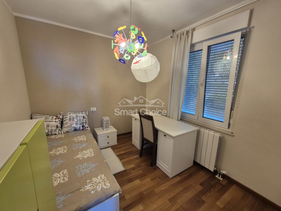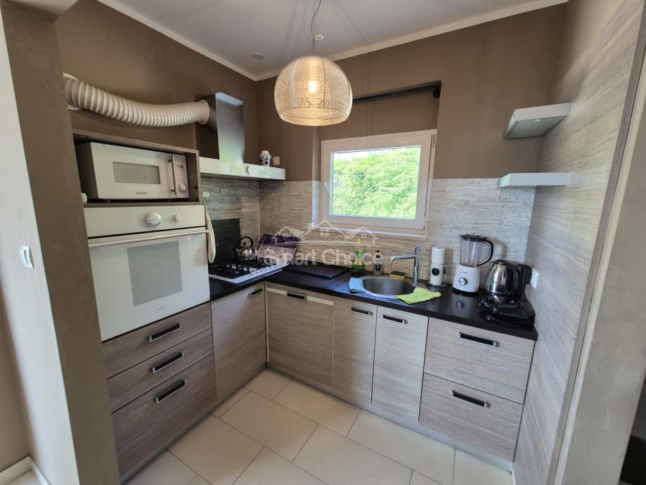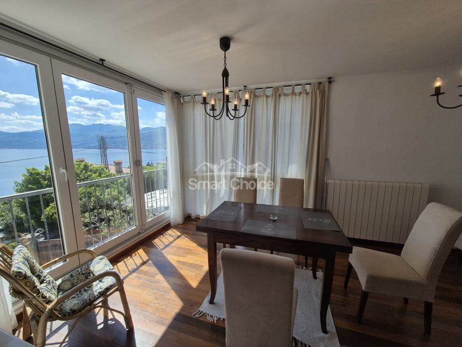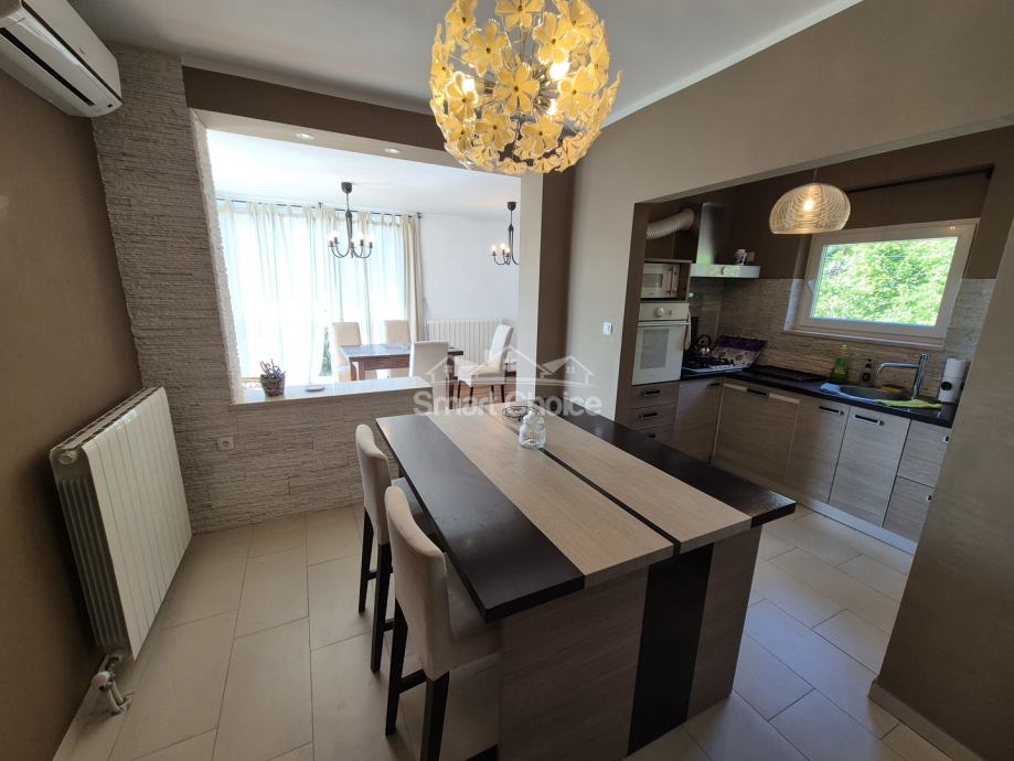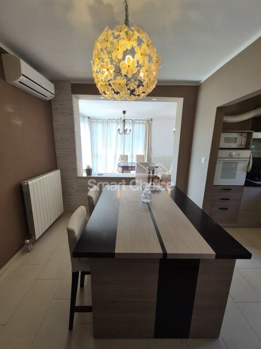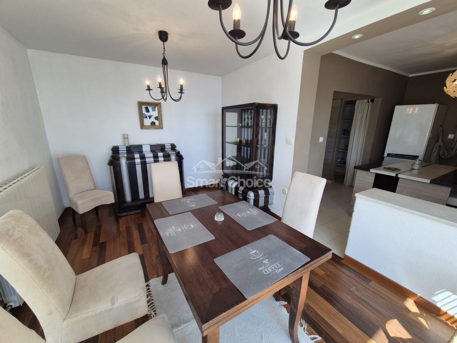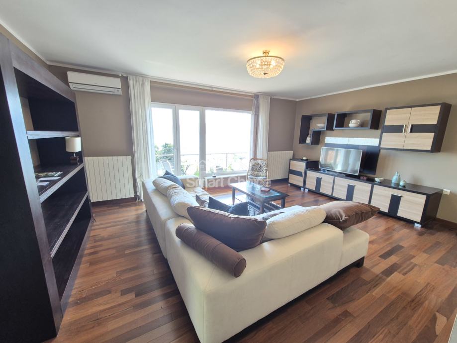 Bivio- etaža na prekrasnoj lokaciji blizu mora i plaža (2.red) s prekrasnim pogledom. Sastoji se od velikog dnevnog boravka, kuhinje s blagovaonom, 2 spavaće sobe, radne sobe kupaone i balkona.