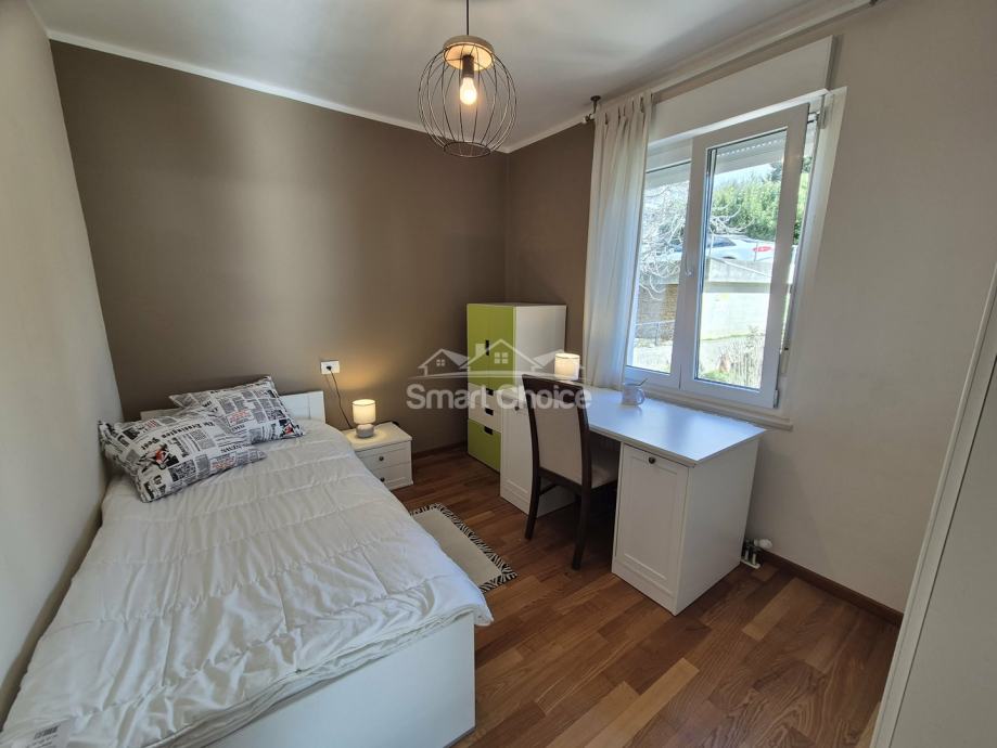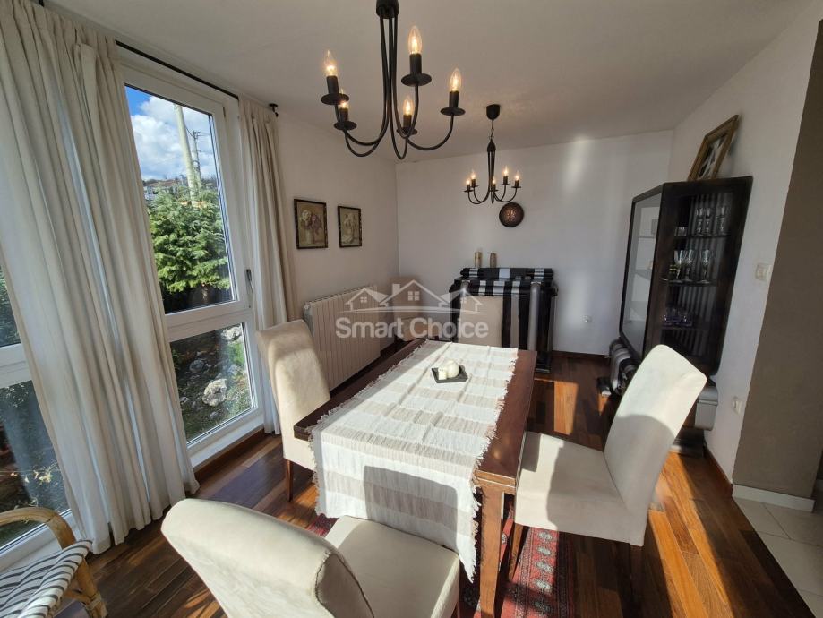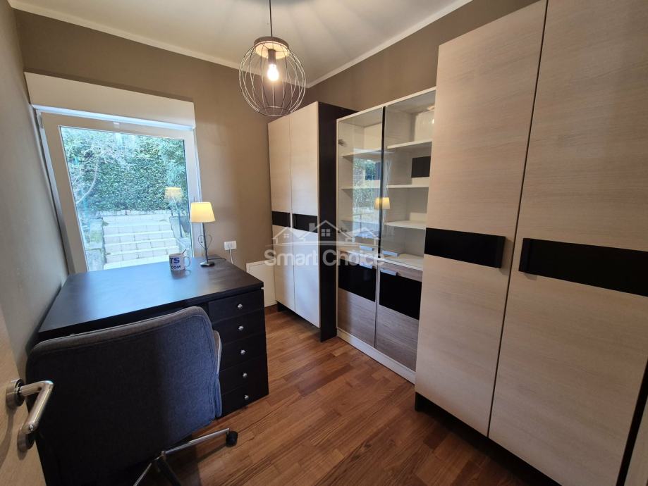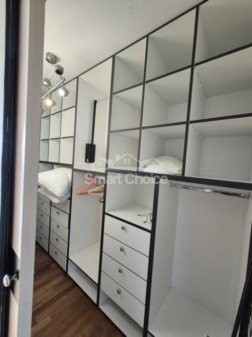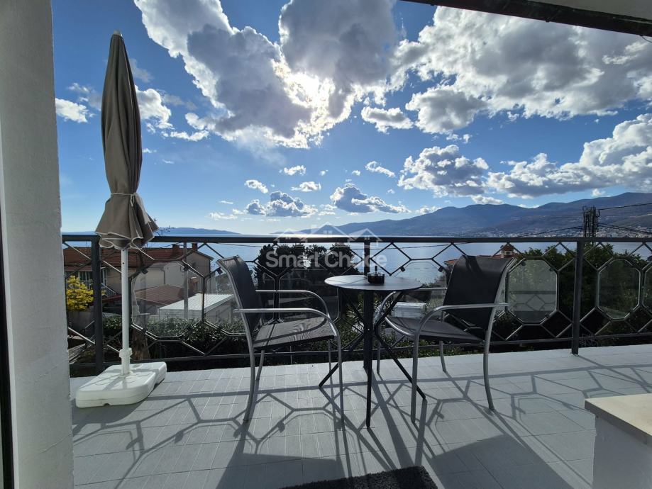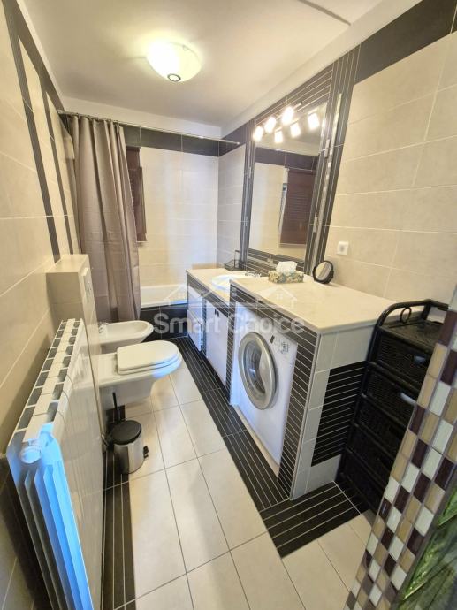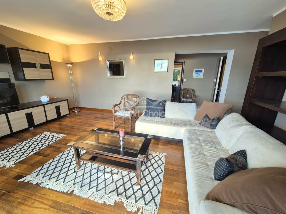 Bivio- etaža na prekrasnoj lokaciji blizu mora i plaža (2.red) s prekrasnim pogledom. Sastoji se od velikog dnevnog boravka, kuhinje s blagovaonom, 2 spavaće sobe, radne sobe kupaone i balkona. Stanu pripada jedno parkirno mjesto.