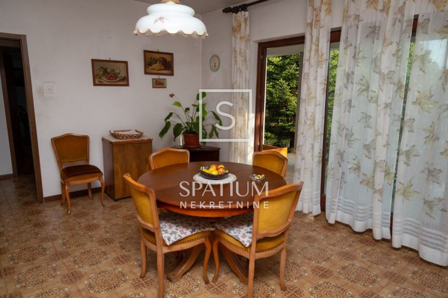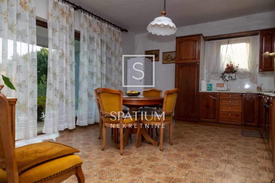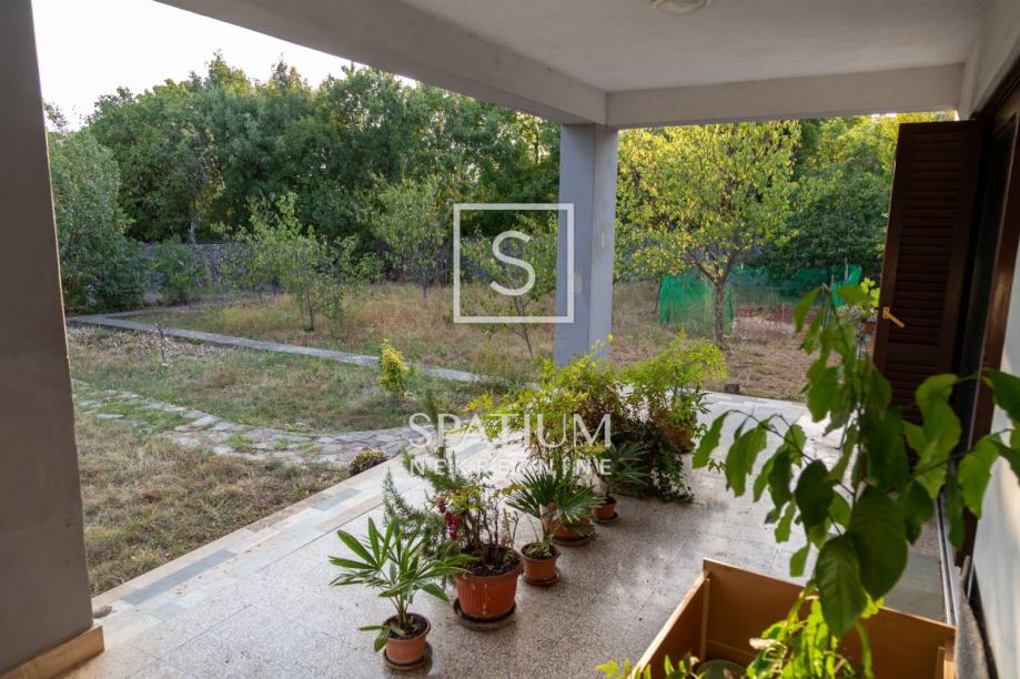Prizemlje je uređeno i ima 159 m2, a kat je u roh-bau fazi te postoji mogućnost dizanja visokog potkrovlja. U dvorištu je i pomoćna zgrada od 42 m2, garaža od 15 m2, i okućnica od 1274 m2. Samostojeća kuća je za adaptaciju te ima prekrasan pogled na more, okružena zelenilom, u mirnoj ulici bez gradske buke. Odlična prilika za izgradnju vile, kuće za odmor ili kao investicija.