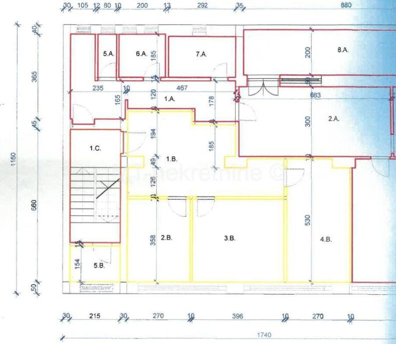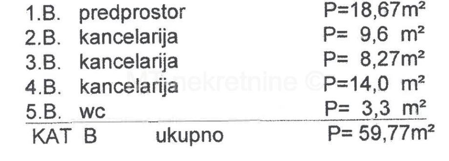 Prostor se sastoji od velikog predprostora, te tri uredske prostorije, wc-a i čajne kuhinje.