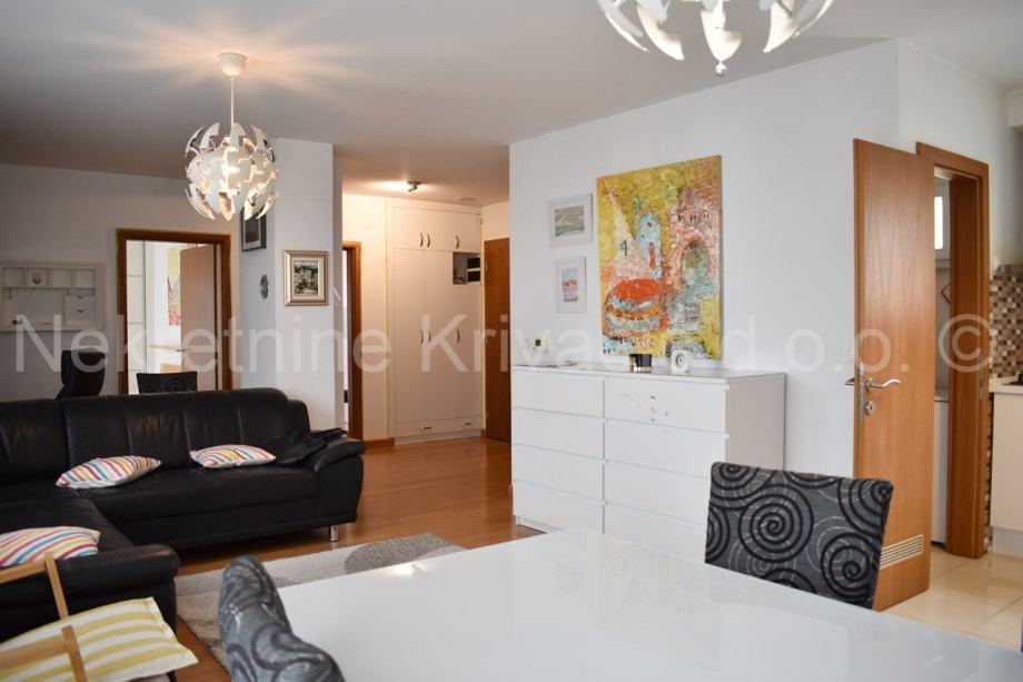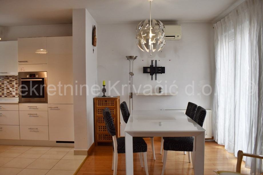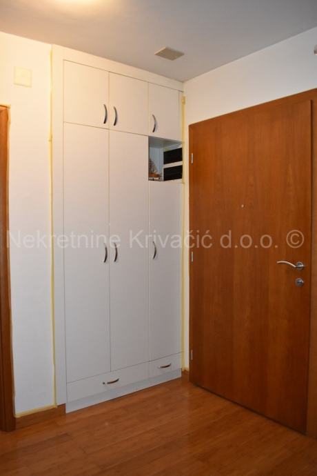 Stan dodatno ima dvije lijepe spavaće sobe, odvojen zasebni wc, kupaonicu s kadom i smočnicu. Sve je namješteno i useljivo. Etažno centralno grijanje na plin i klima.
