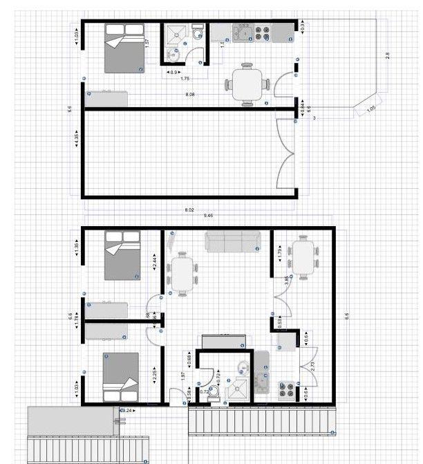 Apartmana veličine 50m2 sa dnevnim boravkom, kuhinjom, dvije spavaće sobe, kupaonice i terase
