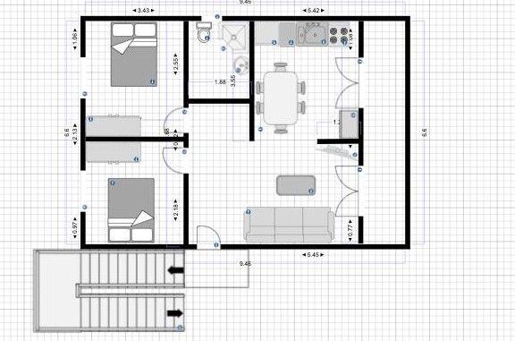 Apartmana veličine 54m2 sa dnevnim boravkom, kuhinjom, dvije spavaće sobe, kupaonice i terase