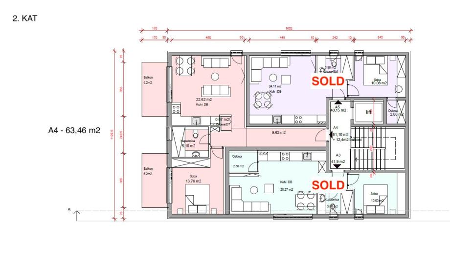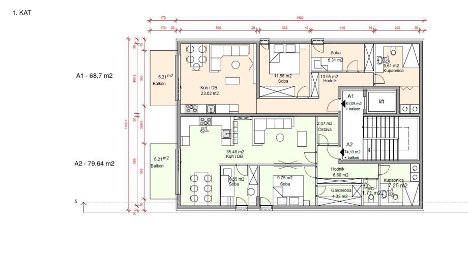 * Apartman A2 - 79,64 m2 (dvosoban, vanjski parking)- 3050 EUR-a/m2