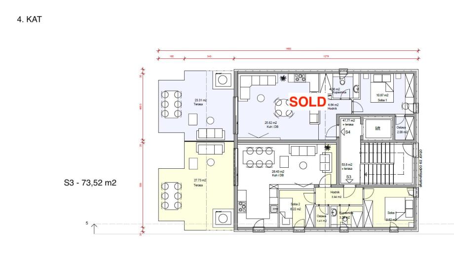 * Stan S2 - 79,16 m2 (dvosoban, vanjski parking)- 3250 EUR-a/m2