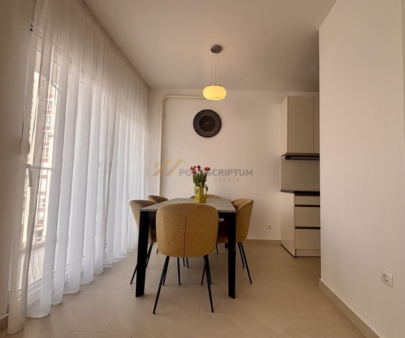 Iznajmljujemo predivan dvosoban stan od 65m2 položen na četvrtom katu stambene zgrade, orijentacije zapad-sjever.