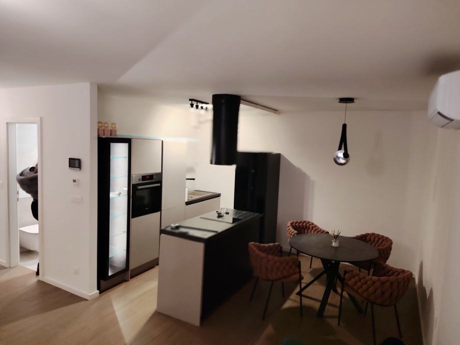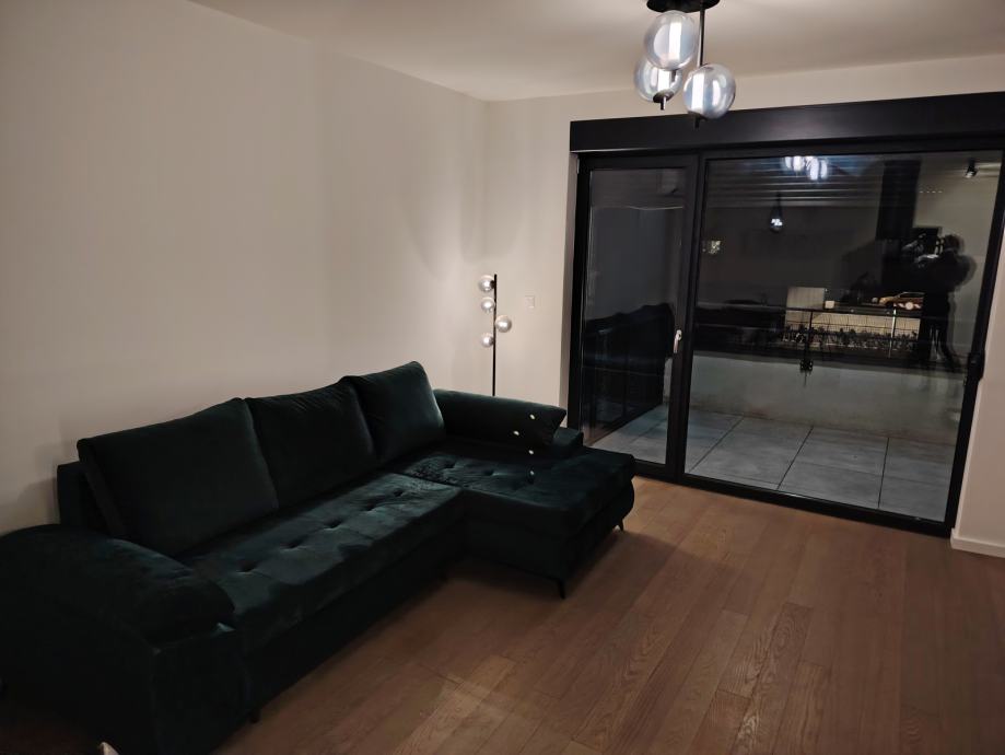 Green side residence - pokraj Arena centra, stan povrsine 71m2. Dvosoban novi stan+dnevni boravak spojen sa modernom kuhinjom (otok), Jenna kupaona kadom i wc-om+zaseban wc + zasebna prostorija sa perilicom/susilicom+loddia (balkon) s pogledom na park. Podno grijanje sa dizalicom topline (minimialni troskovi grijanja),svaka soba sa zasebnim termostatom. Dizajnerska kuhinja, ugradbeni ormari, Krevet vrhunske kvalitete u spavacoj sobi. Vrhunska garaza sa modernim liftom.