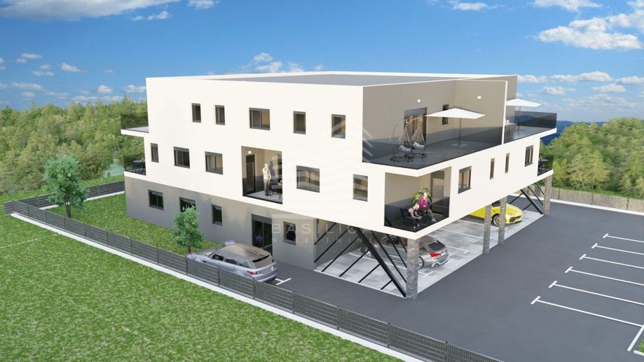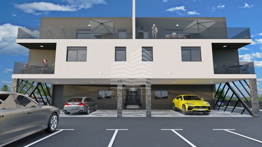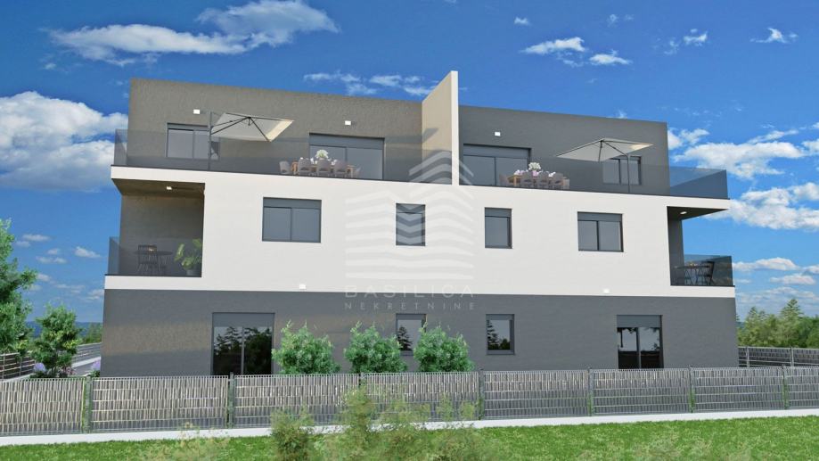 OPREMA:- gradnja: armirano betonska- fasada stiropor i kamena vuna (protupožarna).- stubište izolirano- PVC stolarija sa tri stakla- unutarnja stolarija bijele boje- dizalice topline sa podnim grijanjem- parket hrast- pločice 1. klasa- sanitarije - kade ili tuš kabine, ovisno od stana do stana, te ugradbeni vodokotlić sa visećom školjkom.- klima uređaj- protuprovalna i protupožarna vrata- portafon