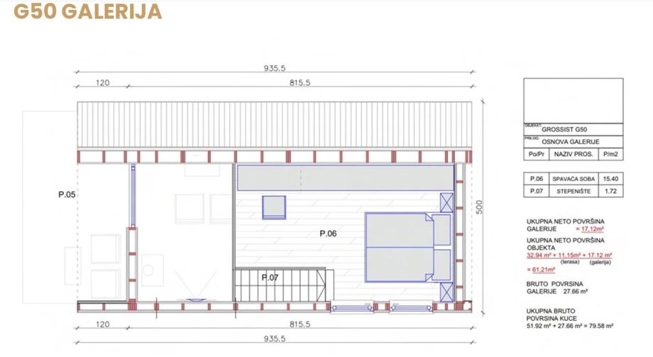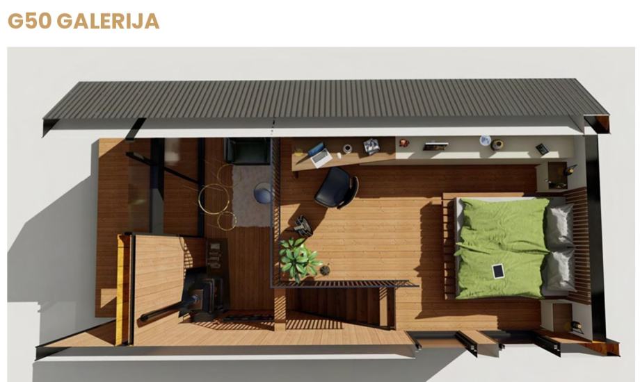 Etaža galerije je spavaća soba koja ima površinu od 15.40m2.