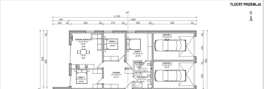 Stan 1, prizemlje - 109.91 m2, sastoji se od sljedećih prostorija:
