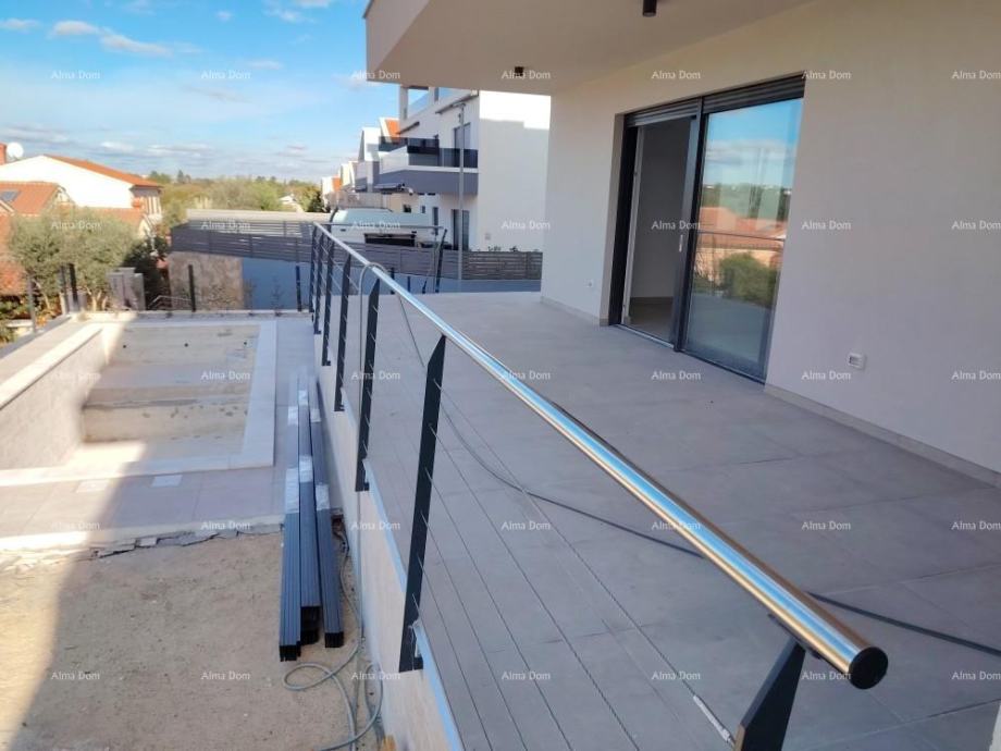 Na terasi su izvjedene sve potrebne instalacije za ugradnju ljetne kuhinji i jacuzzi. S terase niz stepenica je zona odmora s bazenom i sunčalištem. Kupca čeka odluka za obloge u bazenu -folija, pločice ili drugo.