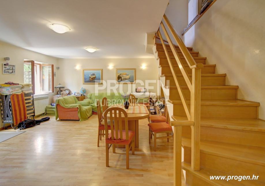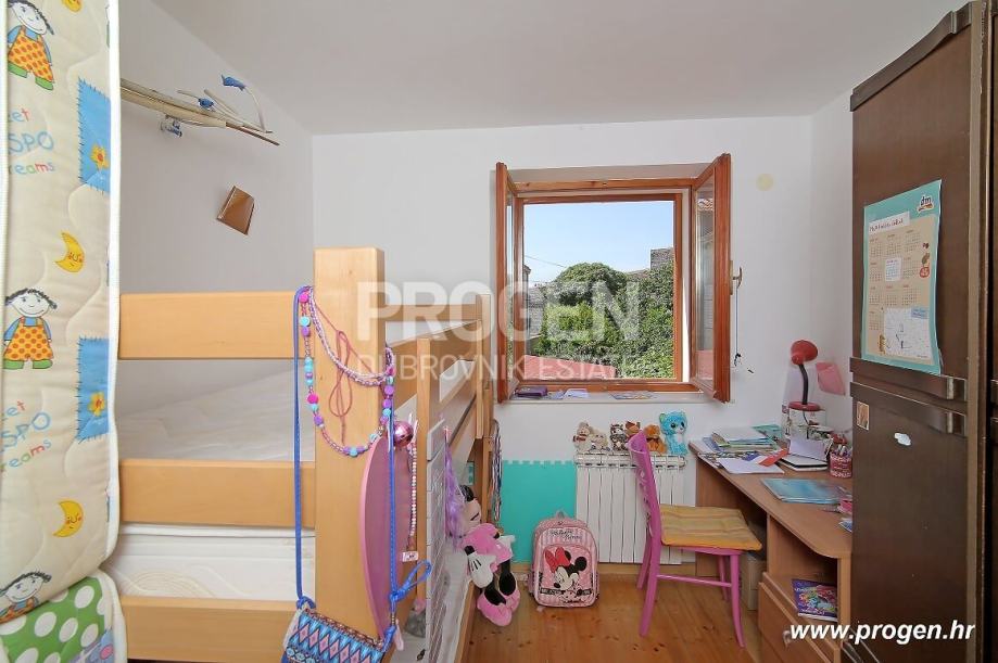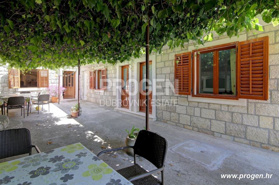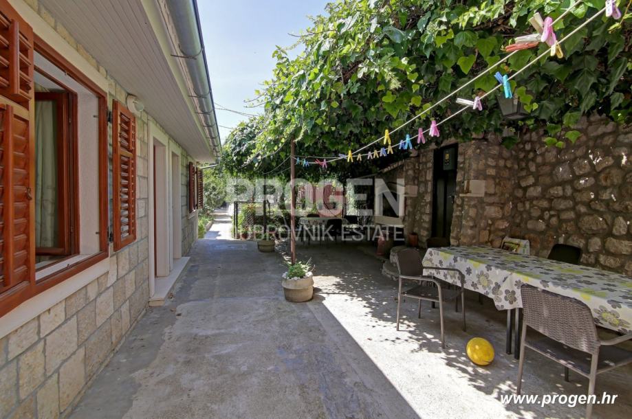 Na zemljištu od oko 800 m2 nalazi se glavna kamena kuca (jedna stambena cjelina na prizemlju, katu i potkrovlju, u prizemlju velika dnevna soba, kuhinja, trpezarija, wc kupaonica, kotlovnica, na katu tri spavaće sobe sa wc kupaonicom, u potkrovlju velika spavaća soba), ispred kuće dvije dodatne sobe sa wc kupaonicama i zasebnim ulazima u funkciji turizma, u dvorištu još dva objekta od po cca 60m2, jedan stan i drugi legaliziran kao konoba. Oko 250m2 stambenog prostora. Vlastiti parking za više automobila. Odlična lokacija.