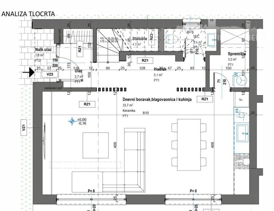 Planirana je ugradnja podnog grijanja na struju, hlađenje putem klima uređaja, dok će PVC stolarija s troslojnim staklima u antracit boji osigurati energetsku učinkovitost i moderan izgled.
