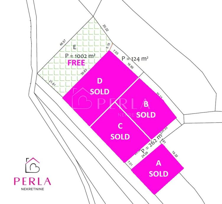 Do njih vodi pristupni put širine 5m (ukupne povšine 124 m2) te se uz parcele se prodaje i suvlasnišvo u pristupnom putu.
