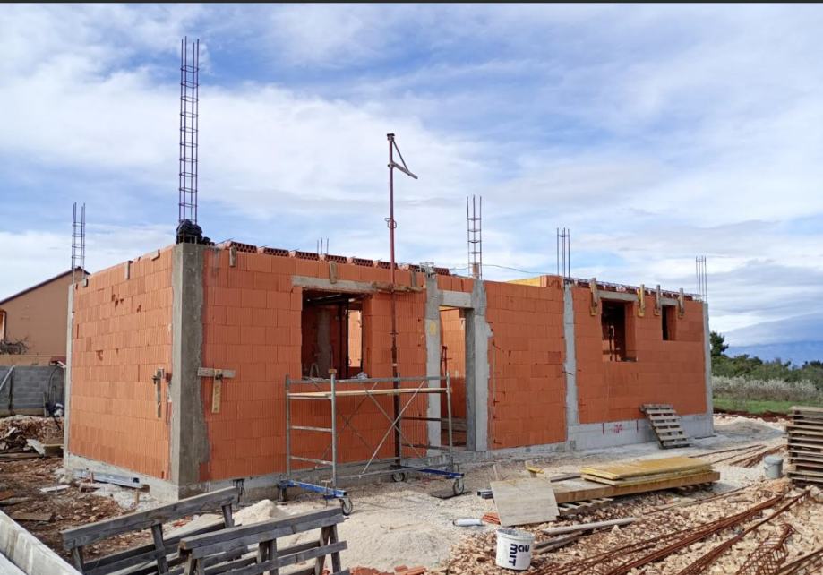 Prodaje se kuća u rouh bau fazi, započeta gradnja, sa građevunskom dozvolom za prizemnicu s bazenom. Mirna lokacija, Stari Bokanjac. Površina parcele iznosi 686 m2. Sastoji se od garaže površine 19,80 m2,kuhinje s blagvaonom 34,34 m2, kupaone, dvije spavaće sobe ( 10,85 i 12,07 m2), dnevnog boravka od 22,86 m2, terase, ukupno 150 m2 (tlocrt u privitku).