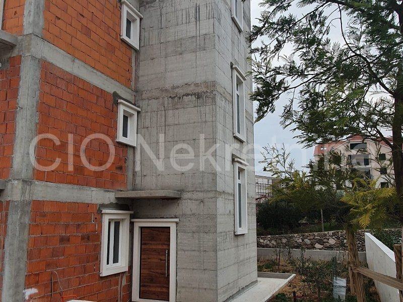 Kuća je izvana u cijelosti zatvorena sa vrhunskim zatvorima, stavljen je krov i nalazi se u roh bau stanju.