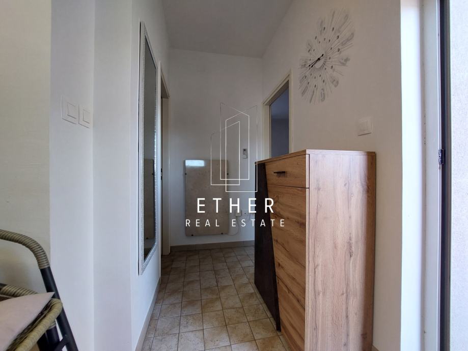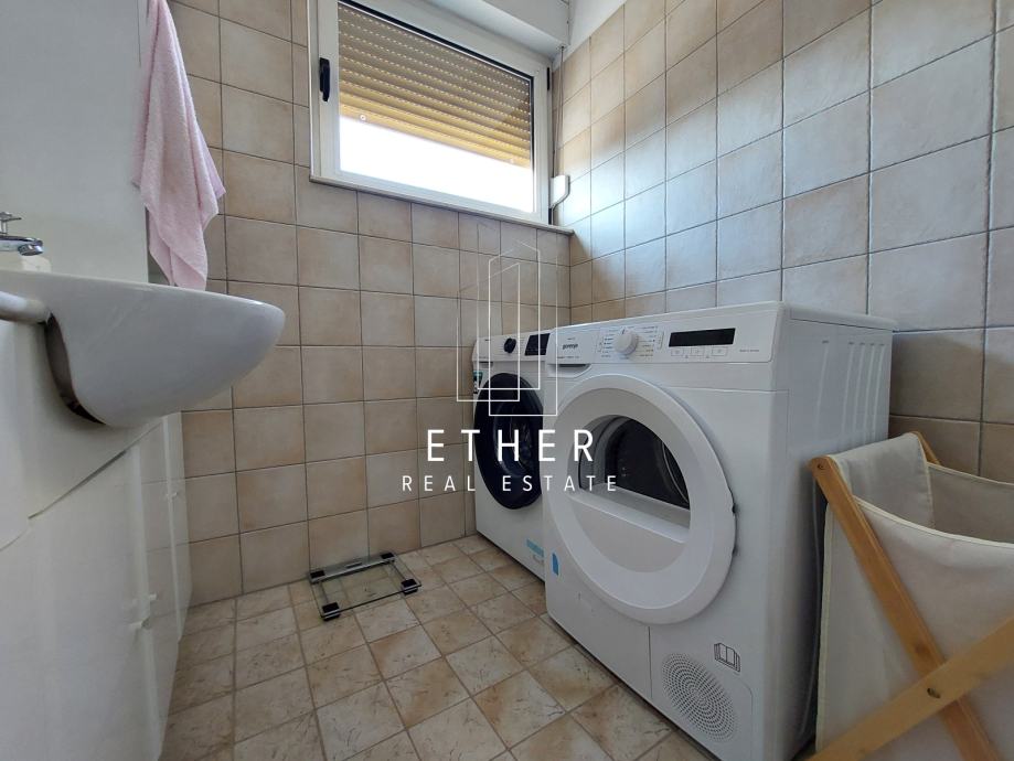 Klimatiziran, opremljen namještajem i uređajima (TV, klima, perilica posuđa, perilica rublja, sušilica rublja).