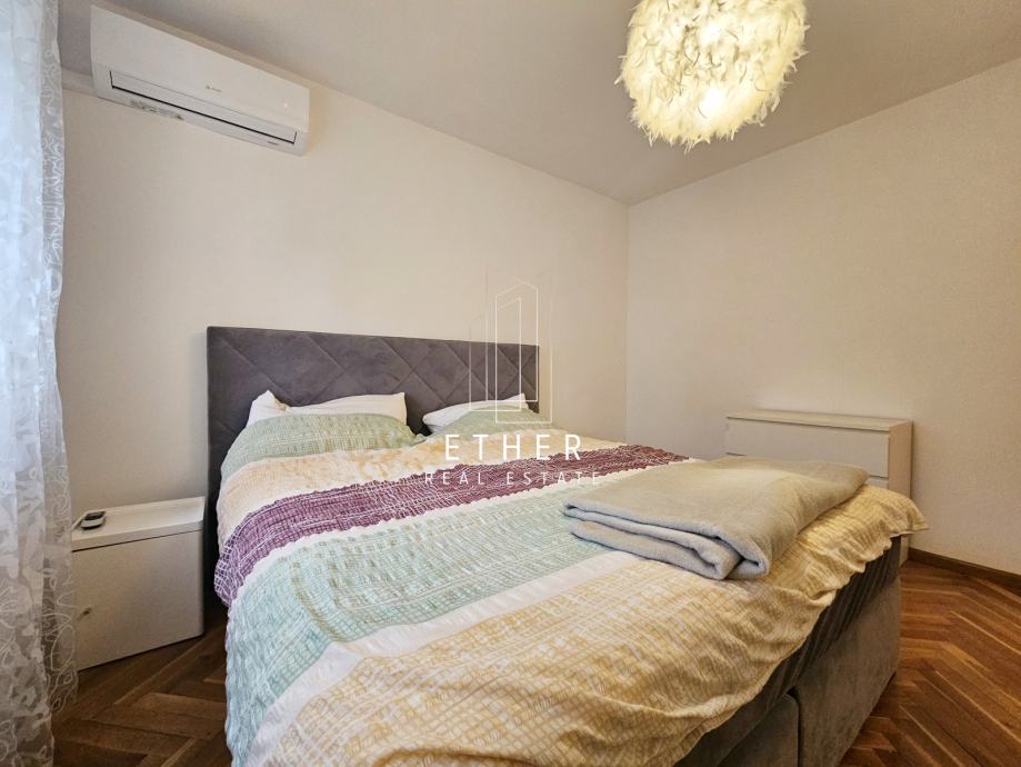 Klimatiziran (tri klima uređaja), opremljen namještajem i uređajima (TV, perilica posuđa, perilica rublja, sušilica).