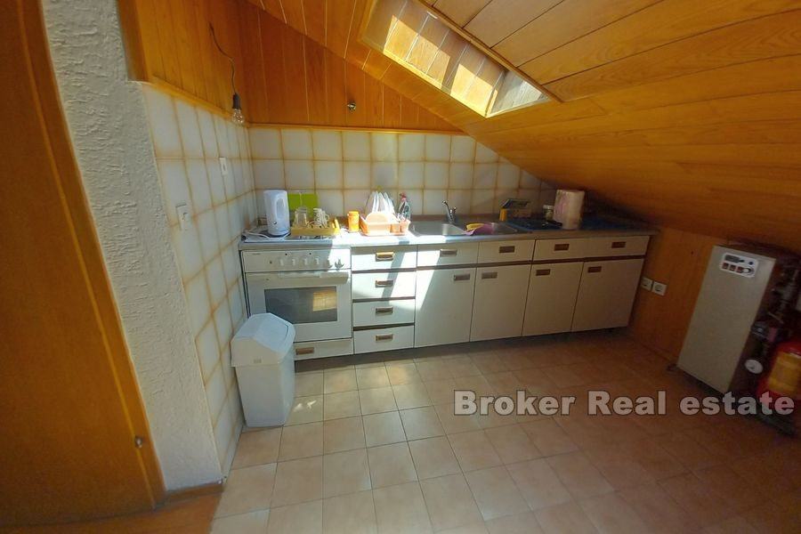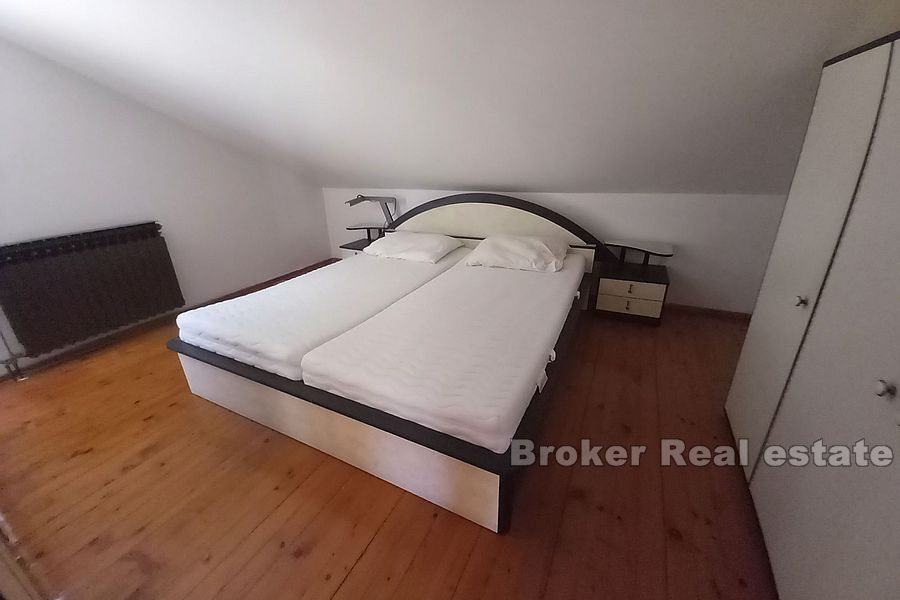 Prodaje se dvojna kuća u centru Splita stambene površine 430 m2 položena na parceli od 400 m2. Kuća se sastoji od 3 etaže i podruma s sanitarnim čvorom koji se prostire ispod cijele kuće te je pogodan za najam u poslovne svrhe. U prizemlju kuće se nalazi stan s kupatilom i posebnim ulazom od cc 100 m2 koji se koristio kao pekarnica te ga je potrebno renovirati iz stana se izlazi u prekrasan vrt s terasom. Na prvoj etaži se nalazi prostrani stan s posebnim ulazom s stražnje strane kuće od 100 m2 u kojem se nalaze 2 sobe i balkon, kuhinja s blagovaonicom, dnevnim boravkom iz kojeg se izlazi na balkon te dvije ostave. Na drugoj etaži se nalazi dvosoban stan u visokom potkrovlju koji se sastoji od kupatila, dnevnog boravka, kuhinje s blagovaonicom 2 sobe jednom većom terasom i balkonom. Velika prednost nekretnine je parking za cc4 automobila u dvorištu kuće. Kuća se nalazi na mirnoj lokaciji na samo 10 min pješke od stare gradske jezgre Splita. U blizini se nalaze svi bitni sadržaji za ugodan obiteljski život kao što su škola, shopping centar, dućani, sportski sadržaji… Nekretnina je pogodna i za najam u turističke svrhe zbog blizine gradskih plaža i stare jezgre.