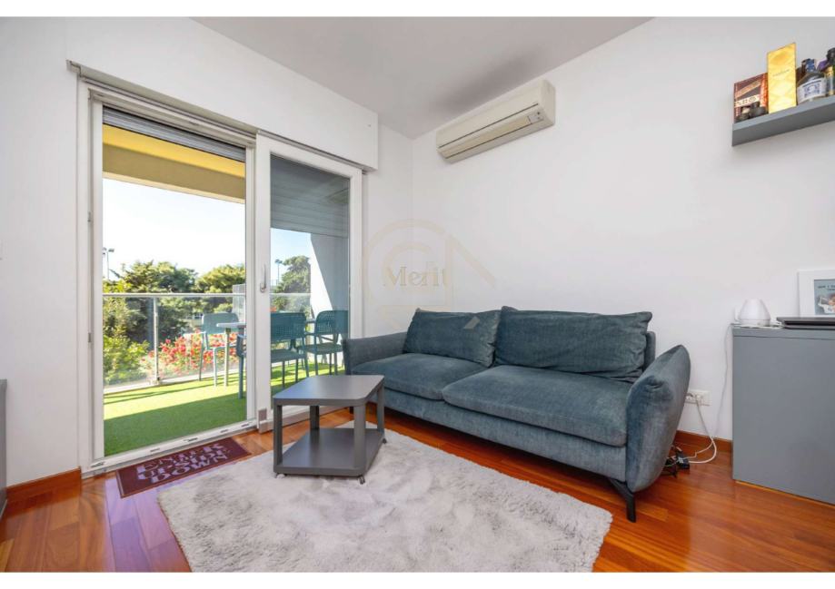 Stan je potpuno opremljen vrhunskim materijalima i dizajnerskom opremom, uključujući rasvjetu koja dodatno naglašava suvremeni ugođaj doma.