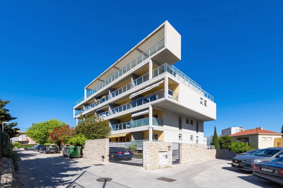 Zgrada se nalazi u mirnom dijelu naselja, u neposrednoj blizini svih sadržaja za udoban i kvalitetan život (trgovine, škole, vrtići, javni prijevoz…). Visoki zidovi koji okružuju zgradu i rampe na daljinsko otvaranje osiguravaju dodatni osjećaj privatnosti i sigurnosti, stvarajući oazu mira unutar gradskog okruženja.