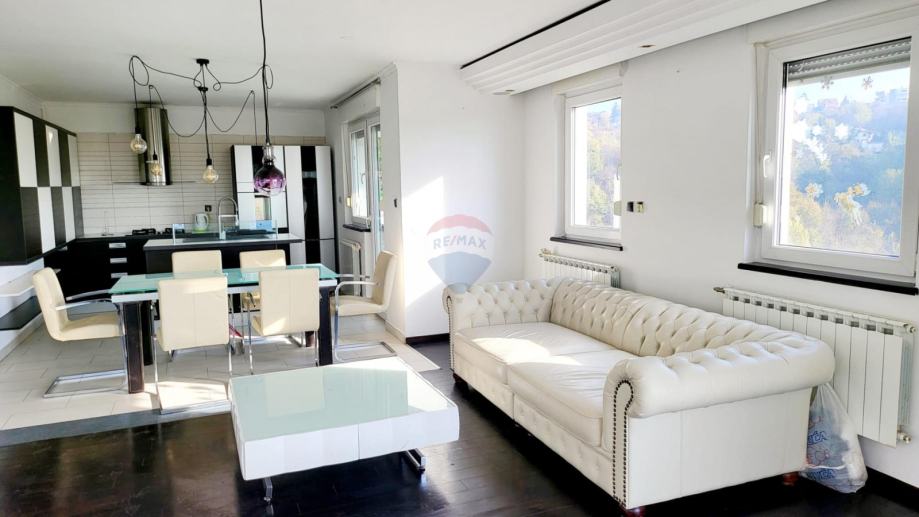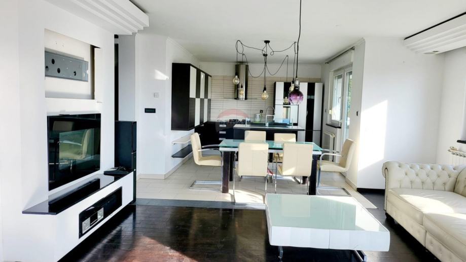Ovaj prostrani stan nudi moderan open space koncept s kuhinjom, blagovaonom + DB iz kojeg je izlaz na zatvorenu loggiu, te balkon i kupaonica.