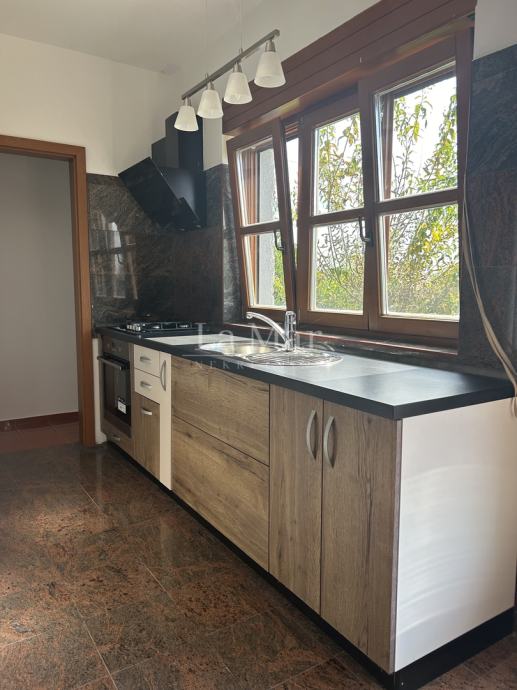 Kuća sadržava prizemlje u kojem se nalazi stan s velikom radnom sobom, zatvorenom garažom sa 2 parkirna mjesta.