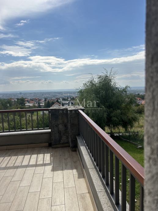 Prekrasna okućnica koja se proteže na 1090m2 sadrži roštilj, sjenicu koja je okružena zelenilom i pogledom na grad.