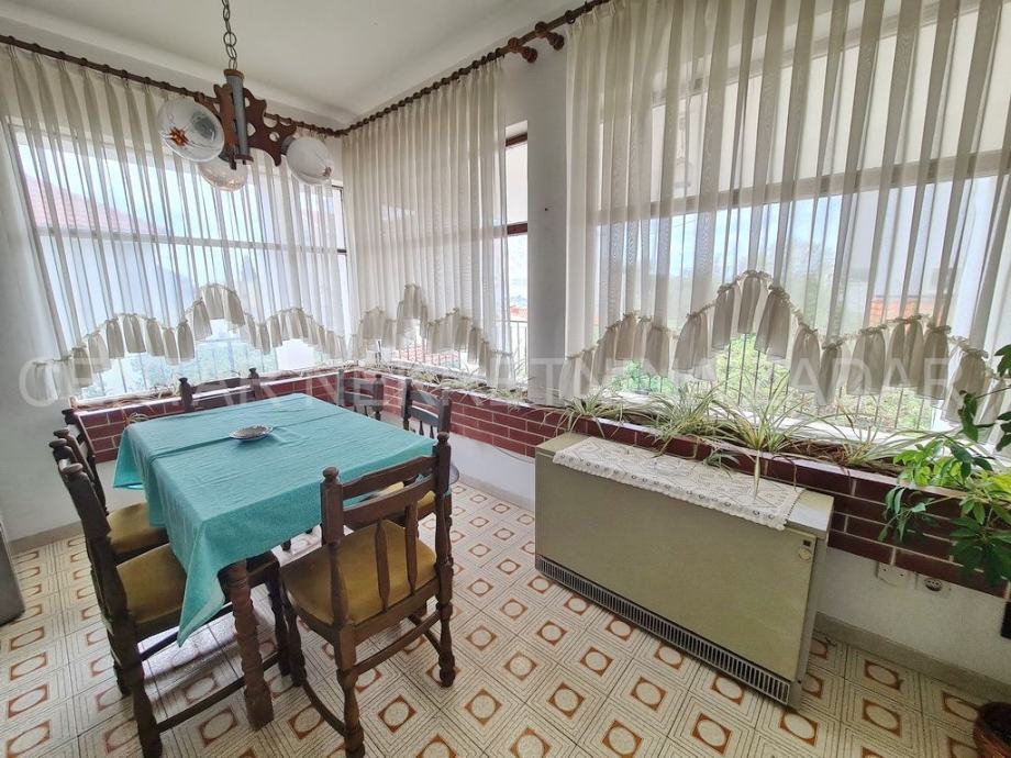 U prizemlju je novouređeni apartman od 41 m² koji se sastoji od predsoblja, kuhinje s blagovaonom, jedne velike spavaće sobe i kupaonice. Pred ulazom je natkrivena terasa od 45 m². Na prvom katu je stan od 135 m² koji se sastoji od predsoblja, kuhinje s blagovaonom, dnevnog boravka, tri velike spavaće sobe (13 14,5 m²), kupaonice i toaleta. Kuhinja izlazi na lođu od 29 m² koja se nastavlja na nenatkrivenu terasu od 48 m², dok dnevni boravak izlazi na lođu od 9 m². Na drugom katu je trosobni stan gotovo istog tlocrta, također s dvije lođe – jedna ima pristup iz kuhinje (28 m²), a druga iz dnevnog boravka (8,5 m²). S obje se vide more i otoci. Iz hodnika se pristupa neuređenom potkrovlju.