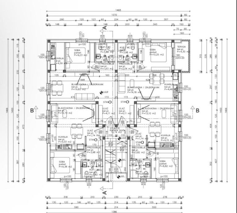 Prodaje se jednosoban stan oznake S2 u prizemlju zgrade s vrtom, novogradnja. Zgrada se sastoji od prizemlja i dva kata, ukupno 9 stambenih jedinica. Stan oznake S2 se sastoji od ulaza, predsoblja, kuhinje, blagavaone, dnevnog boravka, jedne spavaće sobe i kupaone s wc-om, ukupno 35,63 m2 (tlocrt u privitku). Pripada mu vrt od 78,15 m2, po koef. 0,1 7,8 m2, ostava broj 3 površine 16,36 m2, po koef. 0,5 , 8,18 m2 i jedno parkirno mjesto, 2,75 m2. Etažna jedinica će imati ima ukupno 54,36 m2.