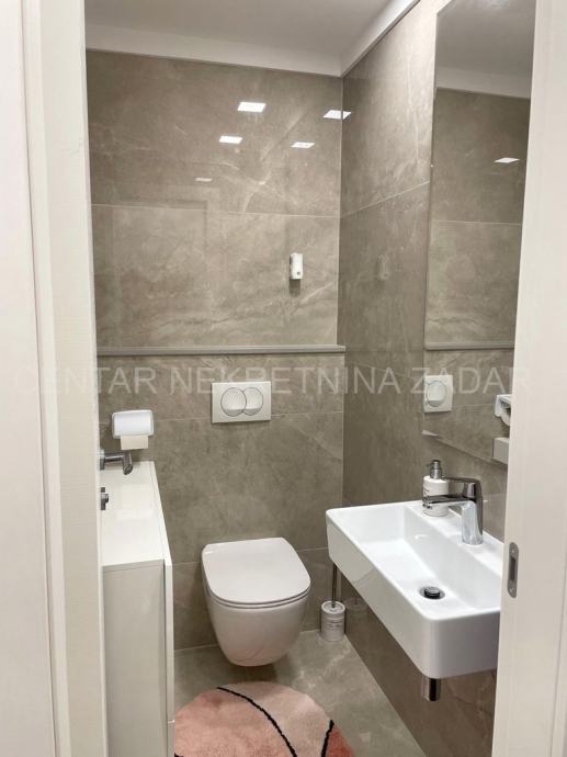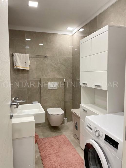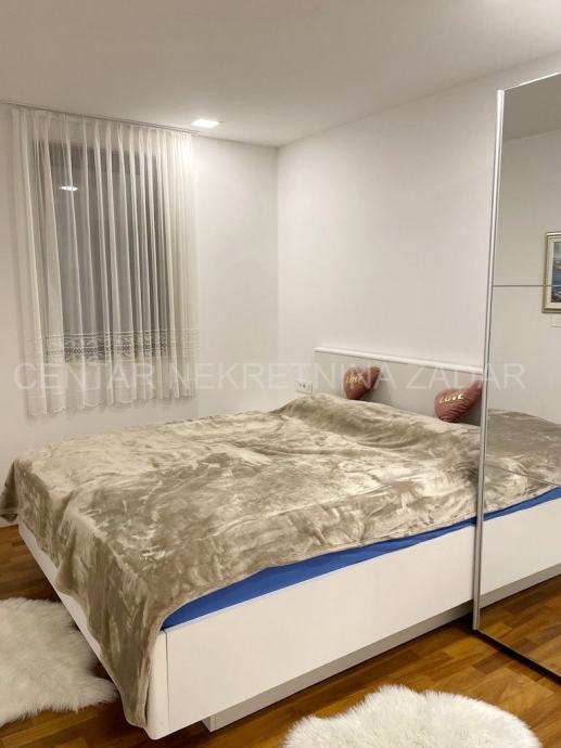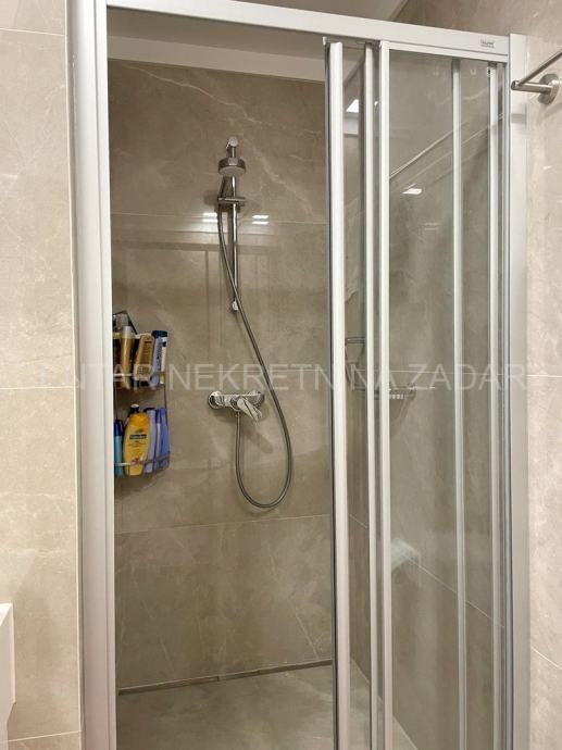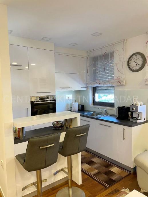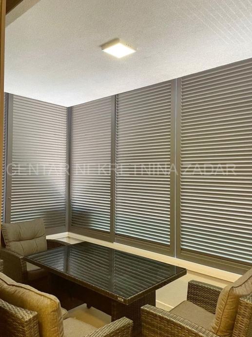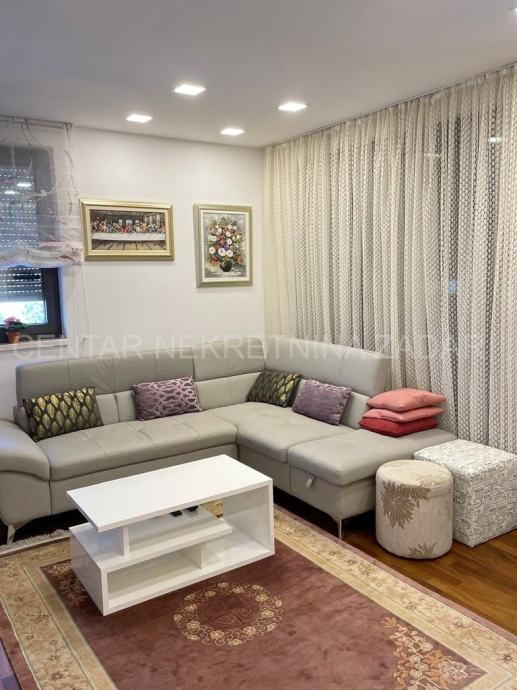 Stan je potpuno namješten i opremljen. Provedeno je podno grijanje, a ima i klima uređaj.