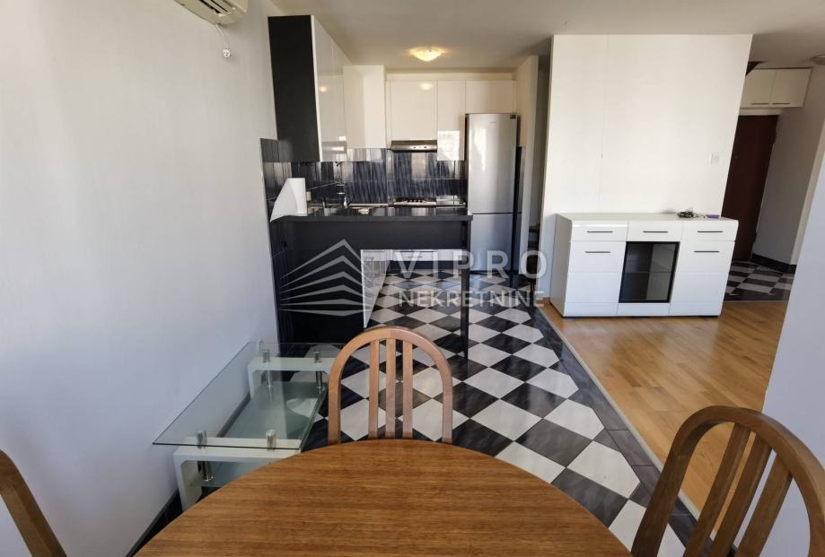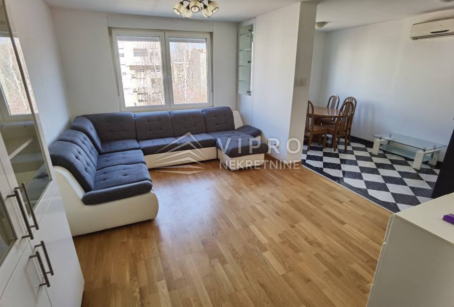 Stan je u potpunosti namješten i opremljen - protuprovalna vrata, klima, perilica za rublje, perilica za suđe...