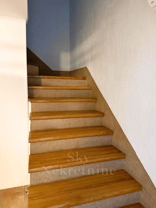 Svaka etaža može se podijeliti kao zasebna cjelina. U prizemlju se nalazi dnevni boravak sa kuhinjom i blagavaonom, te jednom spavaćom sobom i kupaonicom. Na prvom katu nalaze se dvije komforne spavaće sobe, spremište i dvije terase, od kojih je jedna velika i natkrivena, a druga manja nenatkrivena.