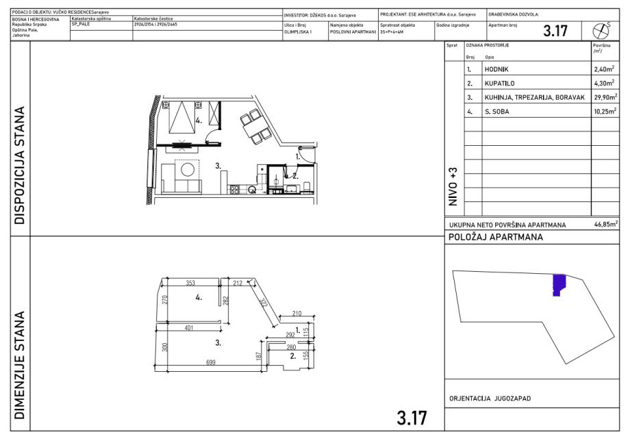 Trenutno u pretprodaji imamo 33 dostupna apartmana, dok se kvadrature kreću od 33,5m2 do 119,96m2. Objekt će imati 211 apartmana,